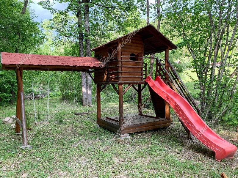 A földszinten foglal helyet a nappali-ebédlõ, konyha és fürdõszoba. Ezen a szinten egy franciaágyas, fürdőszobás szoba is található, ahol egy pótágy igényelhető. Az emeleten egy társalgó és négy franciaágyas, saját fürdőszobával rendelkező szoba áll rendelkezésre. Mindegyik szobához egy-egy pótágy igényelhető. Összesen 10 fõ + (5 gyerek)